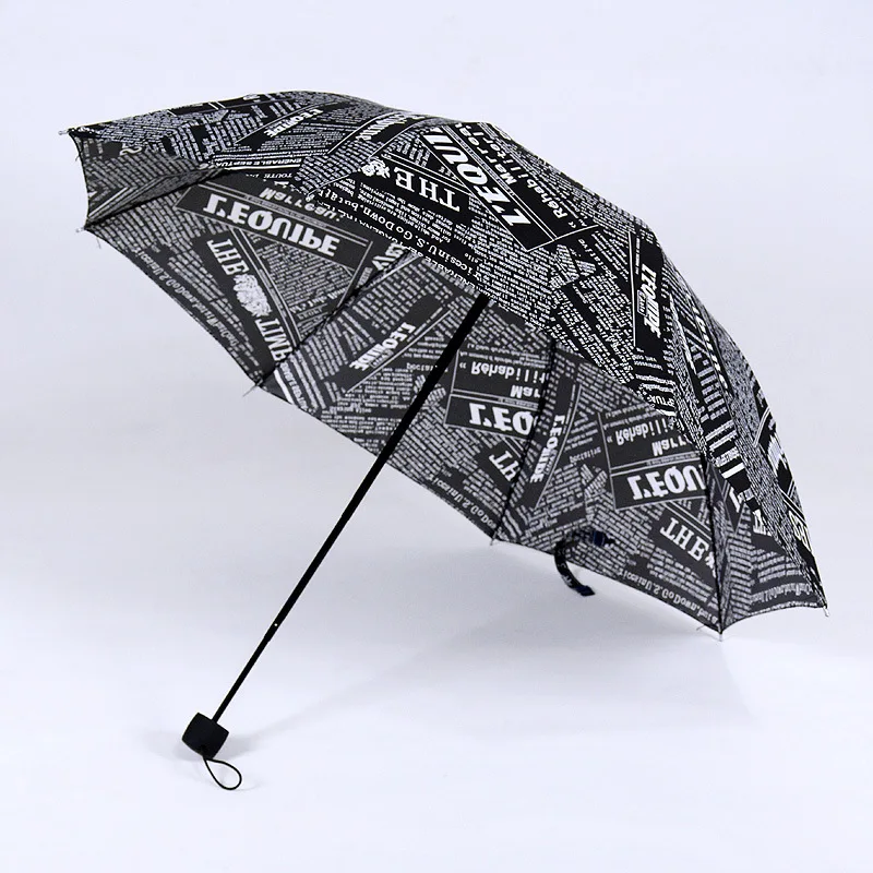 Ветрозащитный дорожный мужской зонт с рисунком газет, Металлический Компактный Зонт для женщин