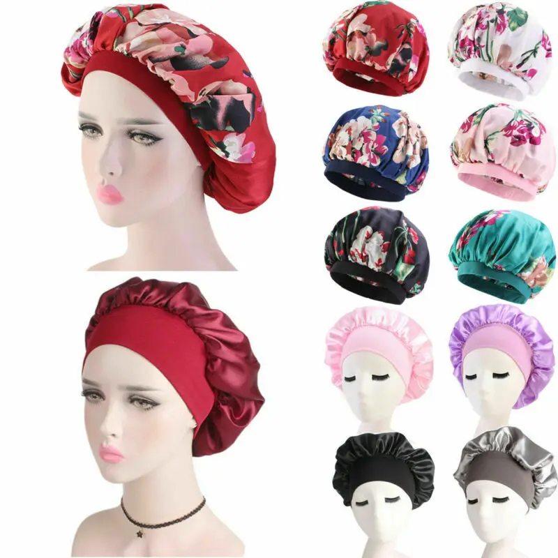 Атласная шапочка для сна, шапочка для душа, шелковая шляпа, шапка для женщин, ночная шапочка для сна, крышка для головы, широкая эластичная ле...