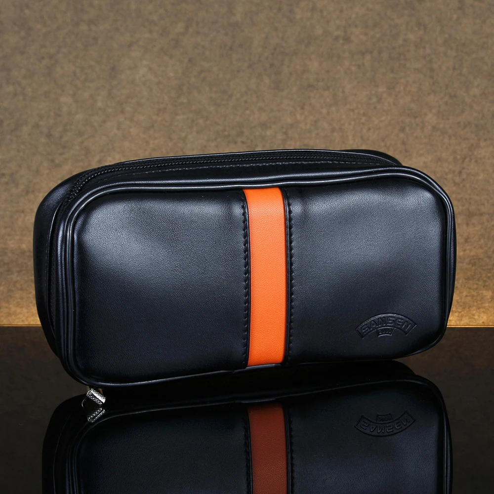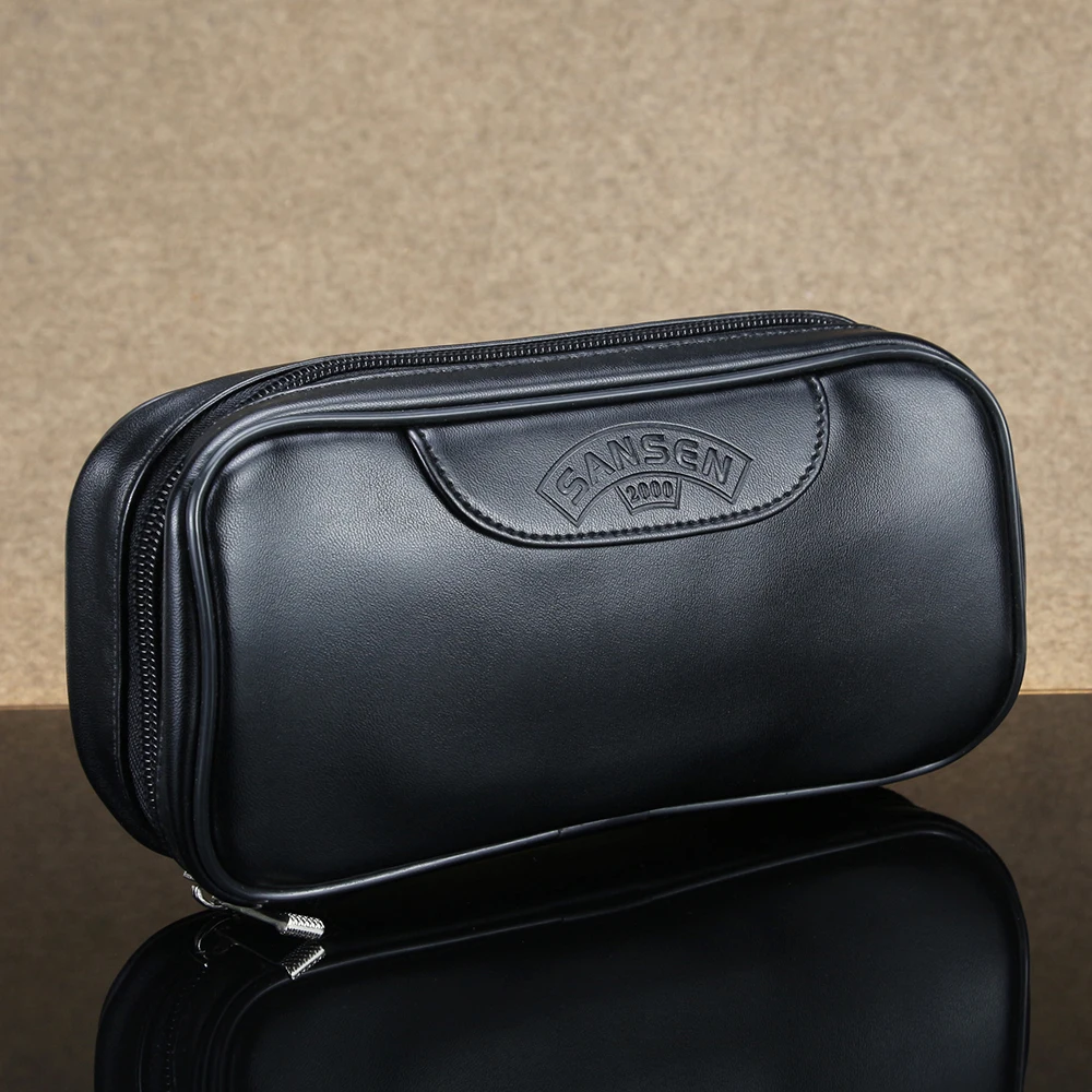 Новая Гладкая кожаная сумка для 2 курительных труб мешочек для табака сплошной черный курительный чехол табака сумка для трубки курительна...