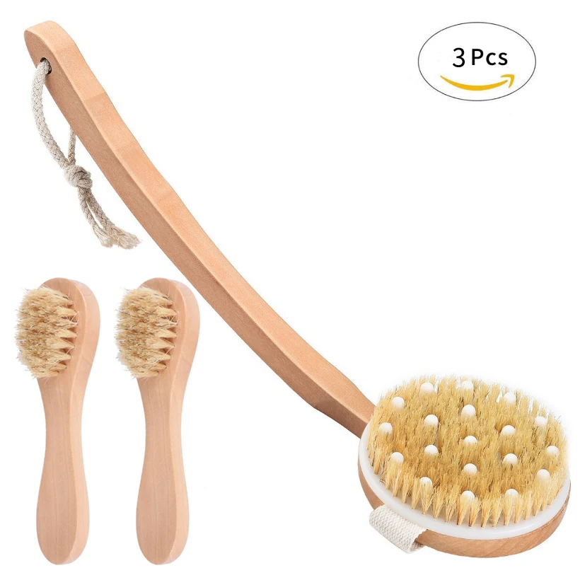 TREESMILE деревянный Массажная щетка для ванны тело щетка для сухой кожи Душ Назад Скруббер Съемная щетина кабана ванны кисть с D30