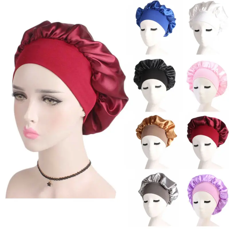 Широкая эластичная лента для волос, Атласная шапочка для сна, шапочка для душа, шелковая шляпа, капот для женщин, ночная шапочка для сна, крыш...
