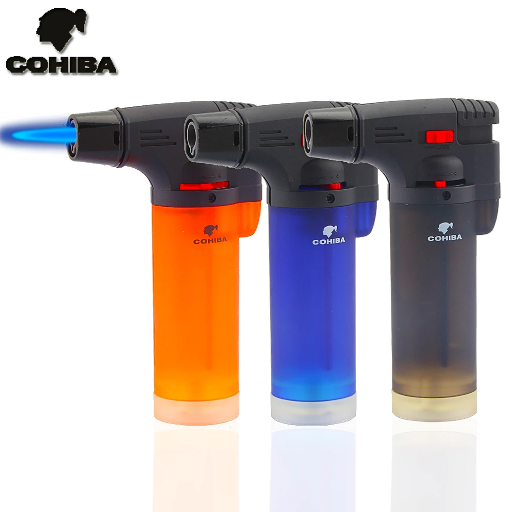 COHIBA наружная Зажигалка для барбекю зажигалка для Сигар Зажигалка струя пистолет Зажигалки ветрозащитные пластиковые бутановые газовые за...