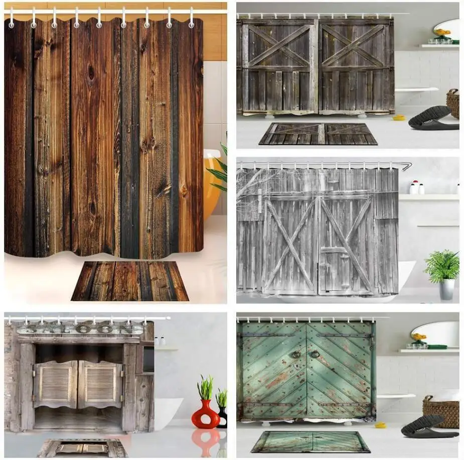 3D ткань с печатным рисунком из дерева в деревенском стиле душевая занавеска в комплекте Водонепроницаемый водонепроницаемый с защитой от п...