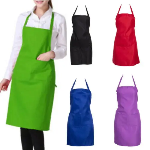 Утолщенный хлопок полиэстер смесь анти-износа приготовления кухонная утварь фартук с карманами черный синий зеленый красный