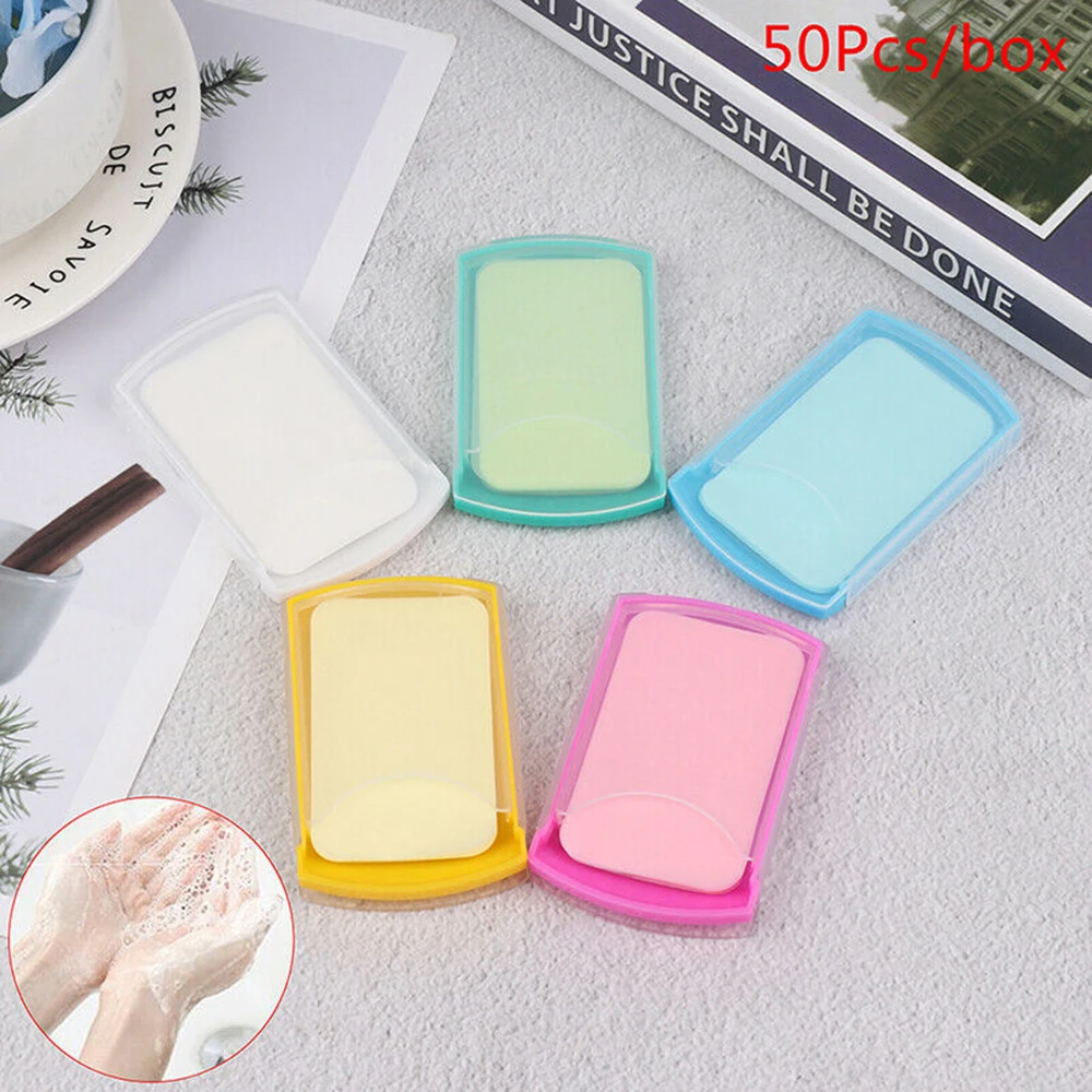 50 шт. портативное мыло, бумага для мытья рук, уход за кожей, мыло роза с коробкой, ломтик листов, мыло для путешествий, одноразовое бактерицидное мыло