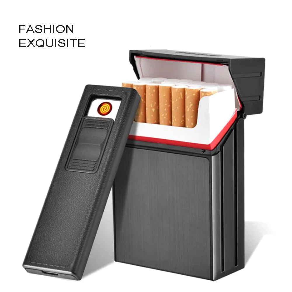 Новинка 20-pack зарядка зажигалка + металлический портсигар USB зарядка Электронная Зажигалка Креативный держатель для сигарет
