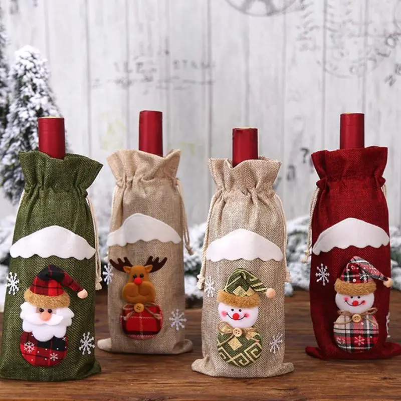 Рождество Санта винная бутылка сумка ужин вечерние элегантные Декор