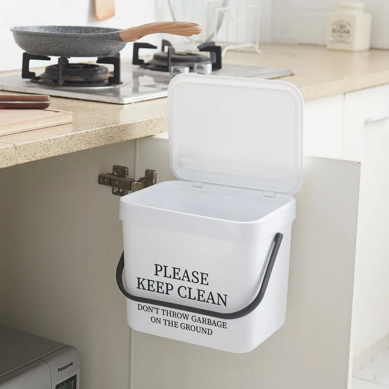 7L Kitchen Cabinet Door Hanging Trash Can with Lid Wall-mounted Waste Baskets Push-top Trash Garbage Bin Can Rubbish Container