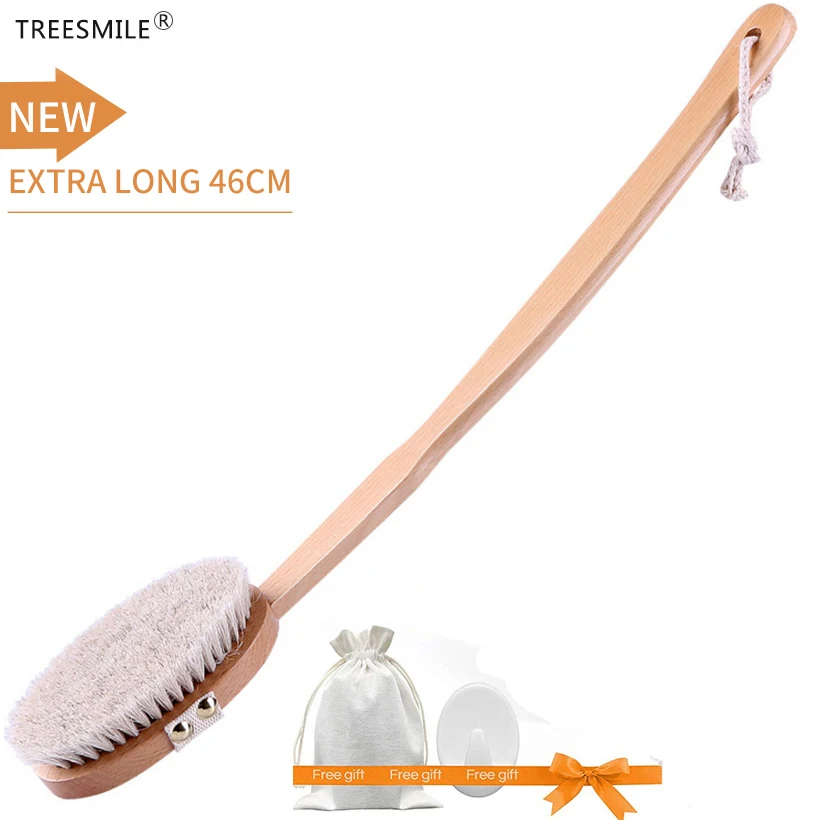 TREESMILE натуральная щетка для ванны из натуральной щетины пилинг для тела Массажная щетка деревянная Регулируемая щетка для душа сухая щетка D30