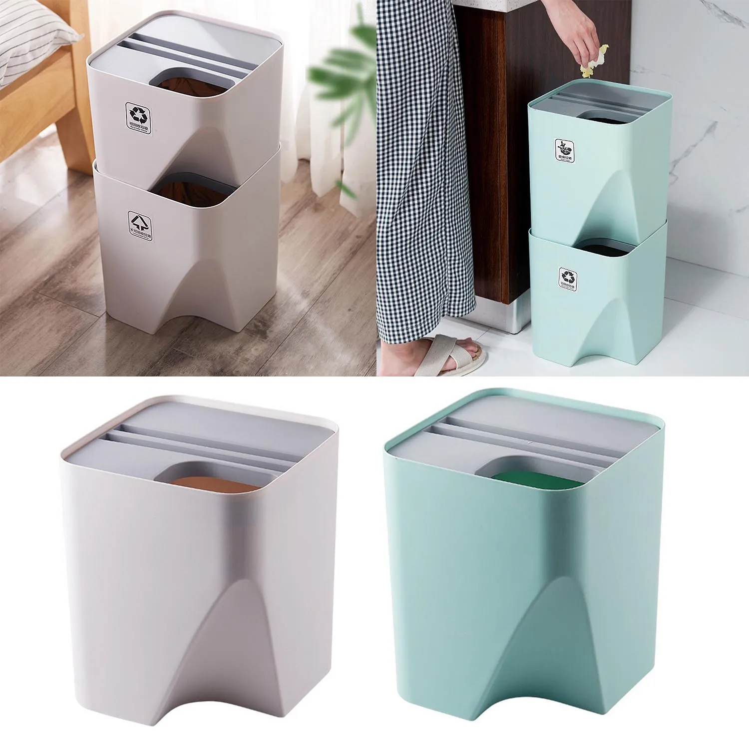 Behogar 1 шт мусорное ведро, складное сортировочное отделение для сухого и мокрого рециркулирования, мусорное ведро для дома, кухни, ванной комн...