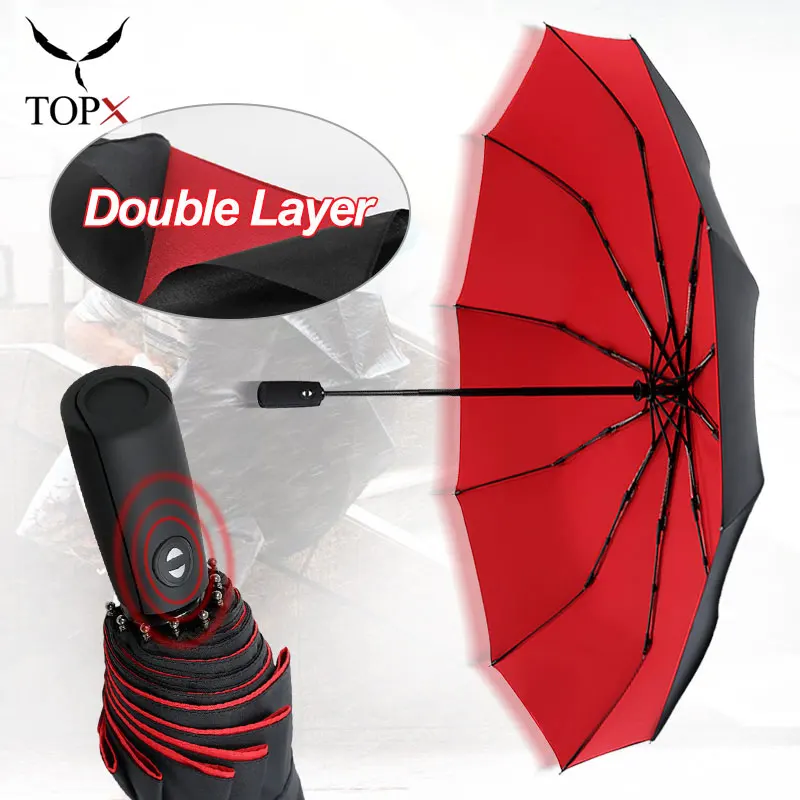 Двухслойный автоматический зонт от дождя, женский, 3 сложения, сильный, ветрозащитный, женский, мужской, 10 к, большой, мужской, деловой, зонтик