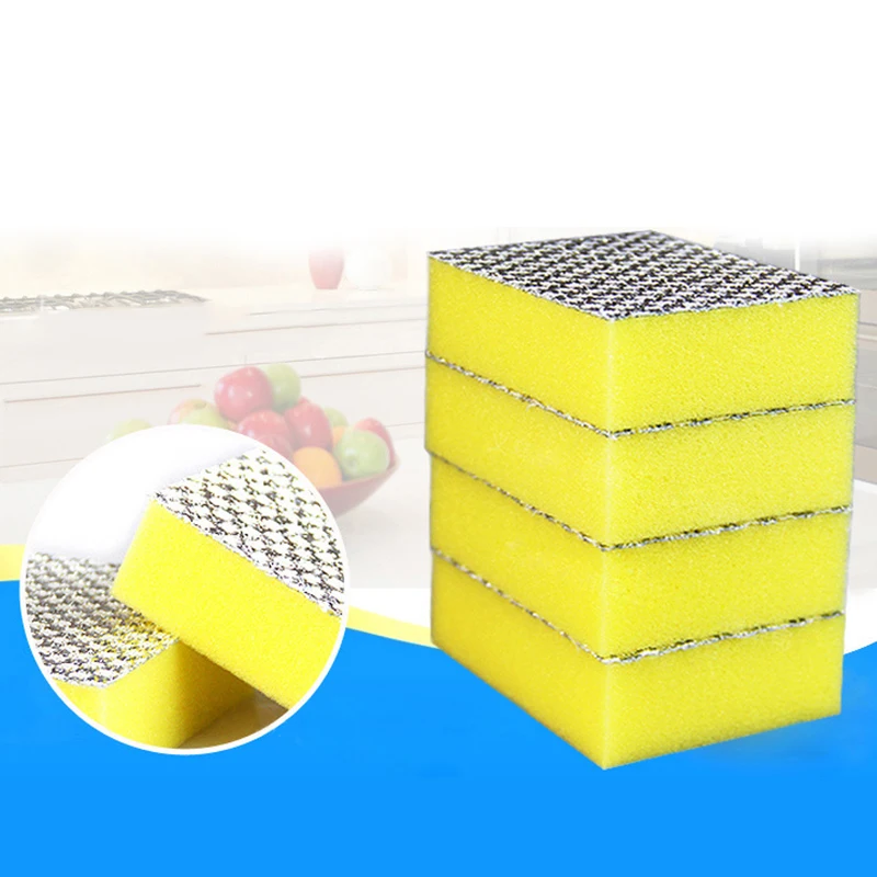10 шт./лот Двусторонняя уборка кухни, ванной губка для мытья посуды серебряной ткани спонж для чистки для очистки поставляет