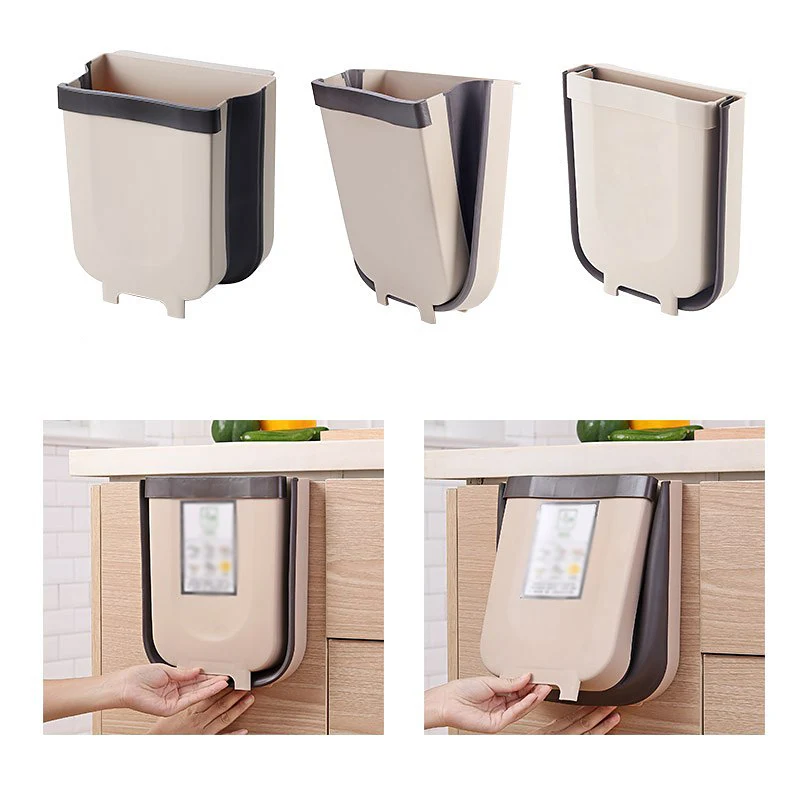 Подвесной складной мусорный ящик, небольшой ящик для хранения мусора для кухни, может быть прикреплен к двери шкафа, Автомобильное Мусорное...