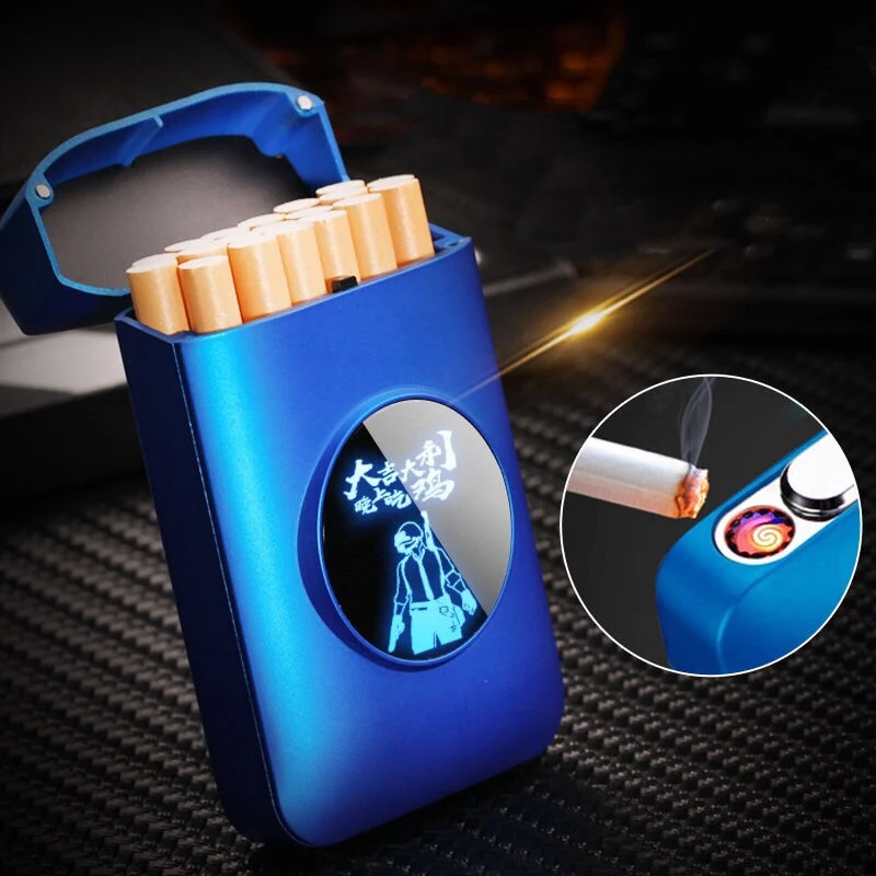 Светодиодный креативный Графический чехол-зажигалка 20 шт. держатели для сигарет электрическая плазменная дуговая зажигалка USB зажигалка и коробка для сигарет