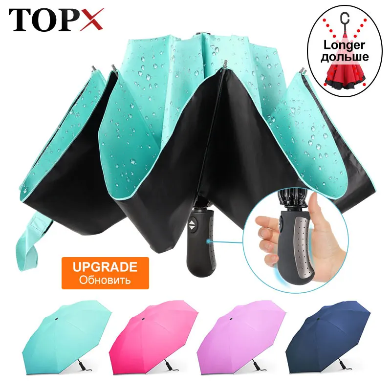 Реверс полностью автоматический зонт дождь женский мужской ветрозащитный 3 складной большой черный покрытие солнцезащитный Зонт Открытый ...