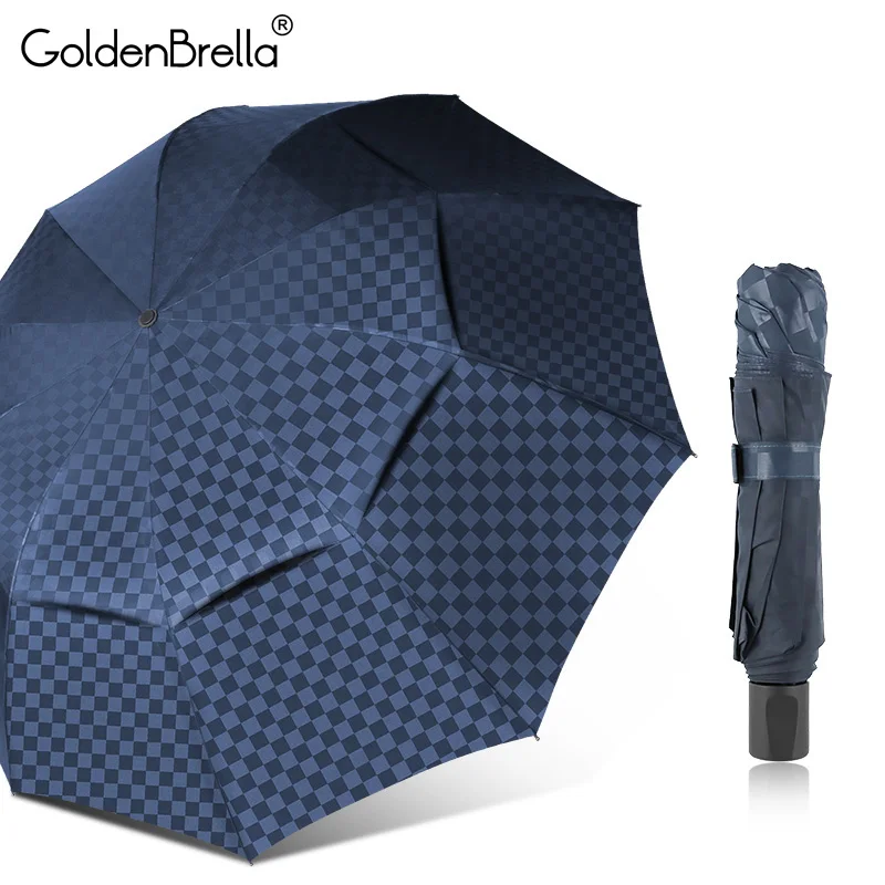 Двойной слои сетки большой зонт дождь для женщин 4 складной 10 ребра ветрозащитный бизнес мужчин Защита от солнца зонтик семья путешествия ...