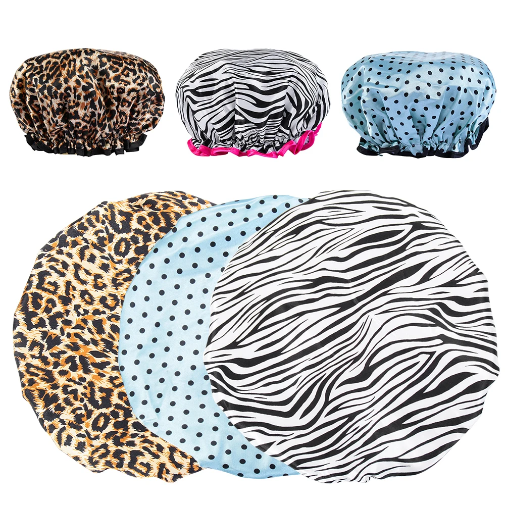 1 шт., толстая двухслойная Водонепроницаемая банная шапочка с леопардовым принтом, покрытие для волос для душа, женские принадлежности, шапочки для душа, аксессуары для ванной комнаты