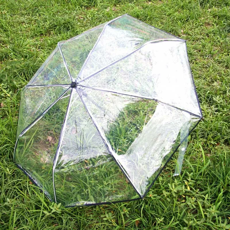 Прозрачный автоматический зонтик для женщин и детей диаметр 93 см Три Складной Ветрозащитный солнечный и дождливый Зонты