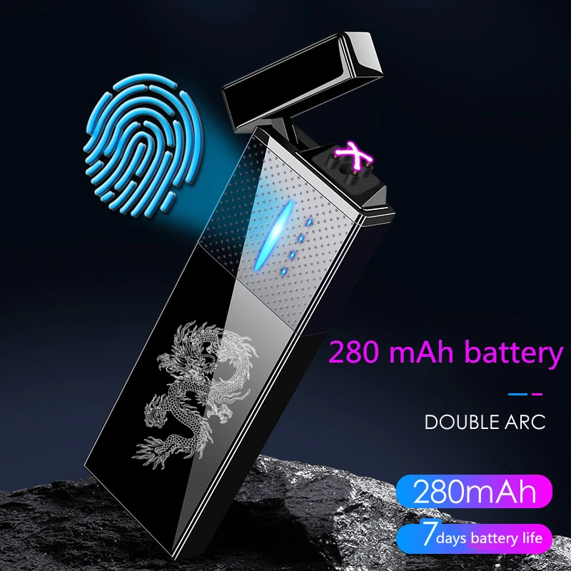 LCD touch USB lighter rechargeable dual arc windproof 280 mAh battery cigarette lighter