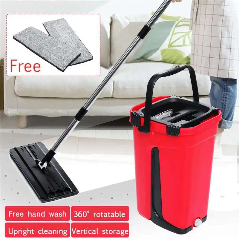 Плоская швабра и ведро, ручная раздвижная насадка на 360 градусов, самоочищающаяся, отлично подходит для влажной и сухой уборки, автоматический отжим, самостоятельная ленивая Швабра
