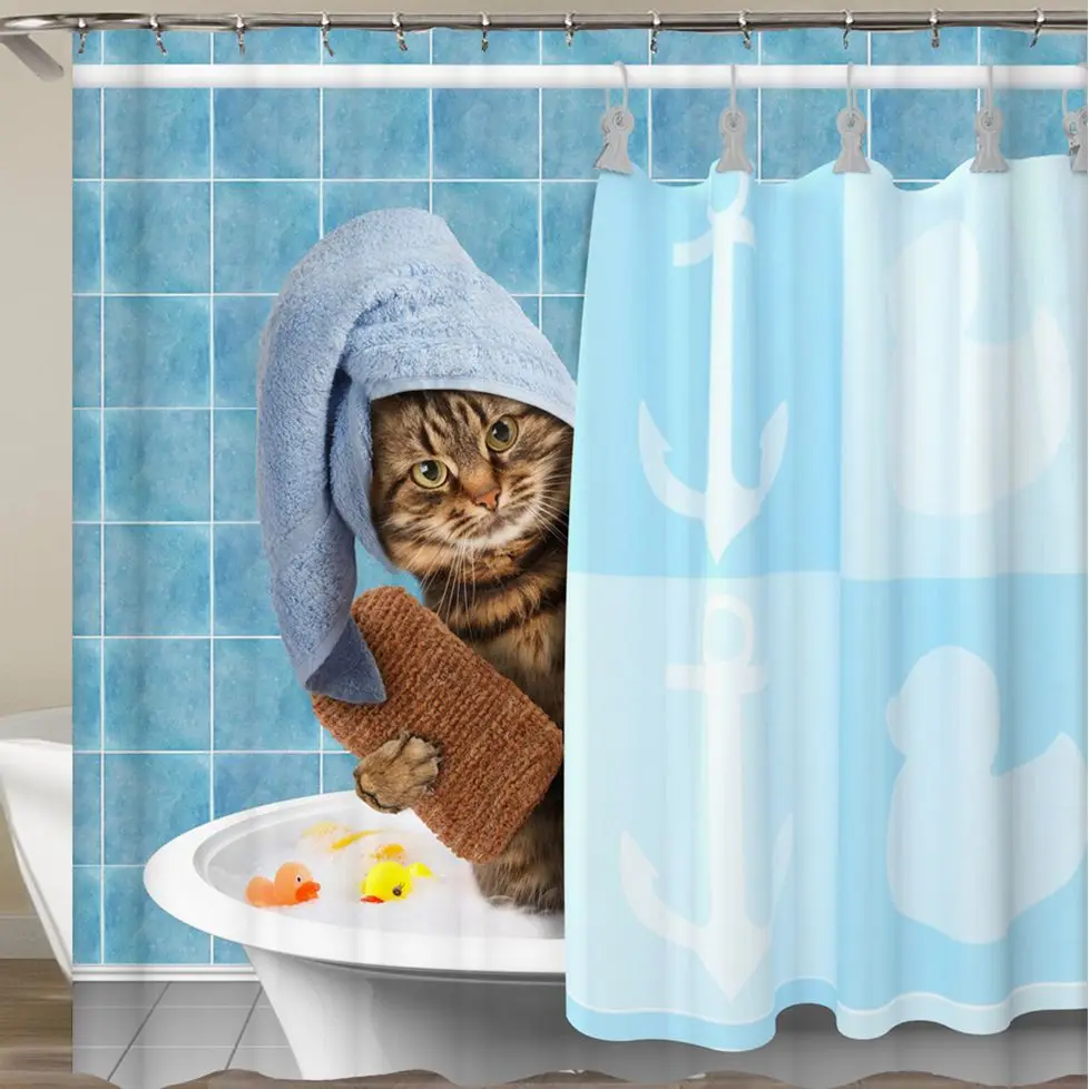 Мультфильм занавеска для душа ткань животное 3d ванная душевая занавеска s ванная занавеска крючки водостойкая водоотталкивающая ванная ко...