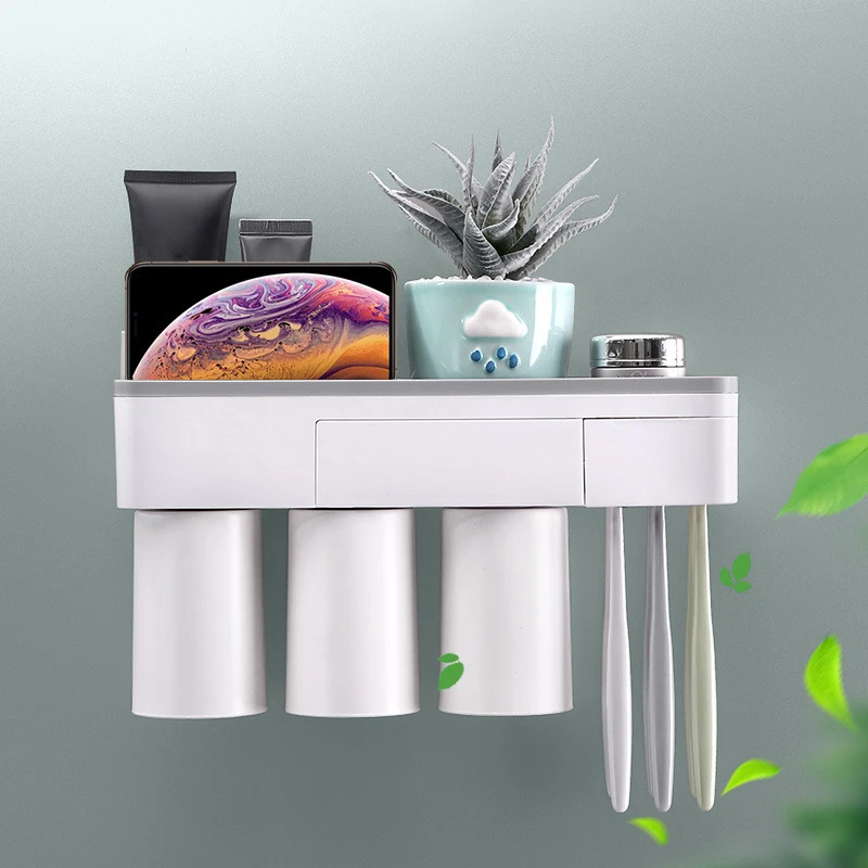 Настенное крепление магнитной адсорбции держатель зубной щетки перевернутая зубная паста макияж моющее средство полка для ванной набор аксессуаров