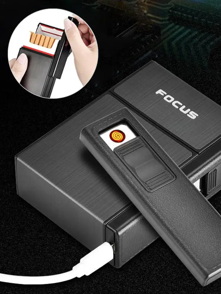 2019 Новый чехол для сигарет с зажигалкой Бизнес съемный usb зарядка Зажигалка пластик алюминий может держать 20 сигарет