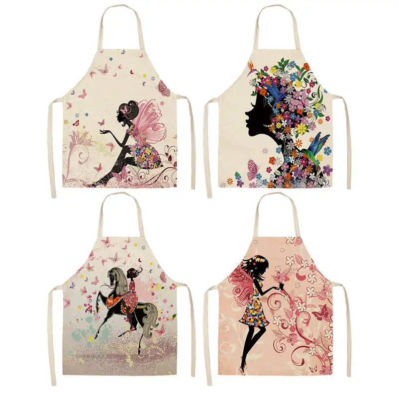 1 шт. хлопок белье цветок бабочка девушка печатных кухня фартуки для женщин дома пособия по кулинарии выпечки фартук сарафан 53*65 см WQ0034