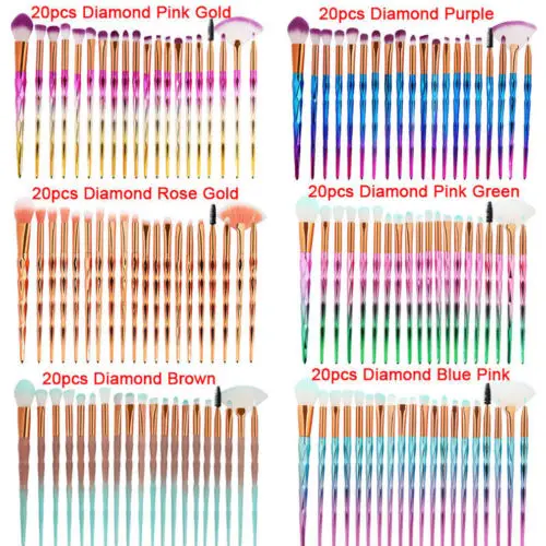 20 шт. в наборе, алмазные кисти для макияжа с единорогом, основа для бровей, тени для век, набор мягких кистей, пудра для губ, инструменты