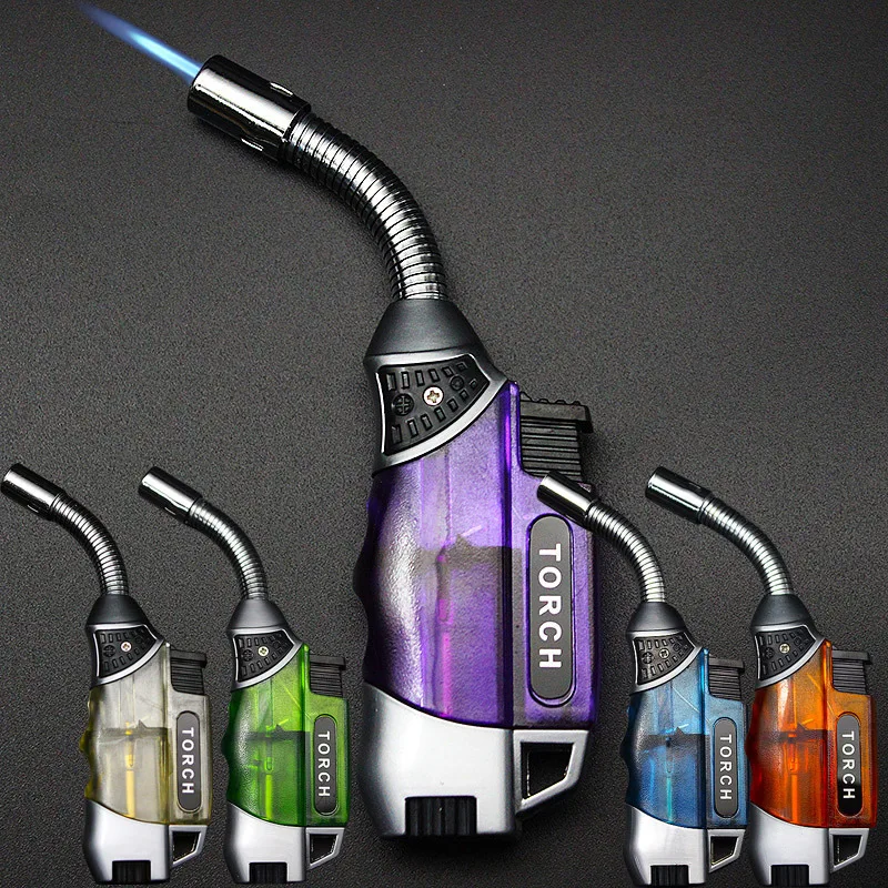 Шланг факел турбо Зажигалка струя бутан сигары кухня гибкая трубка Зажигалка сигарета 1300 C ветрозащитный барбекю зажигалка зажигания без газа