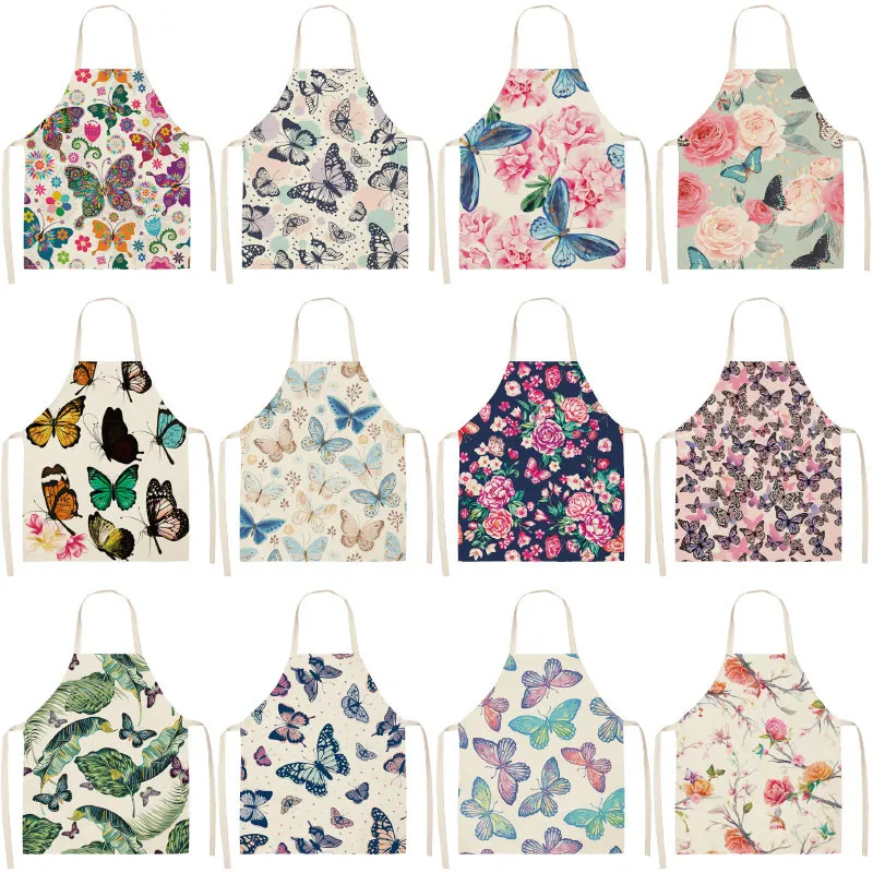 1 шт Бабочка с принтом Кухня фартуки для Для женщин хлопково-льняной домашний Пособия по кулинарии выпечки фартук передник для очистки 53*65 с...