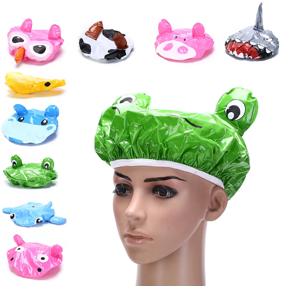 Милый мультфильм животных Дизайн водостойкий ПВХ эластичный спа душ кепки для ванной крышка волос протектор шляпа аксессуары для ванн
