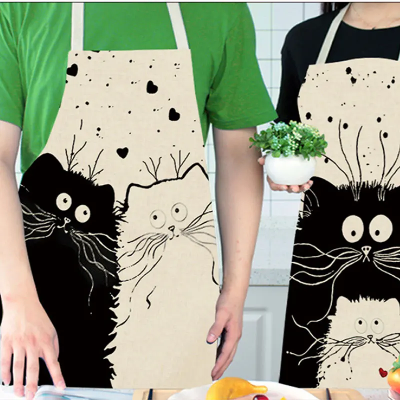 Современный минималистский милые Мультяшные коты узор фартук хлопок и лен материал освежает и легко носить