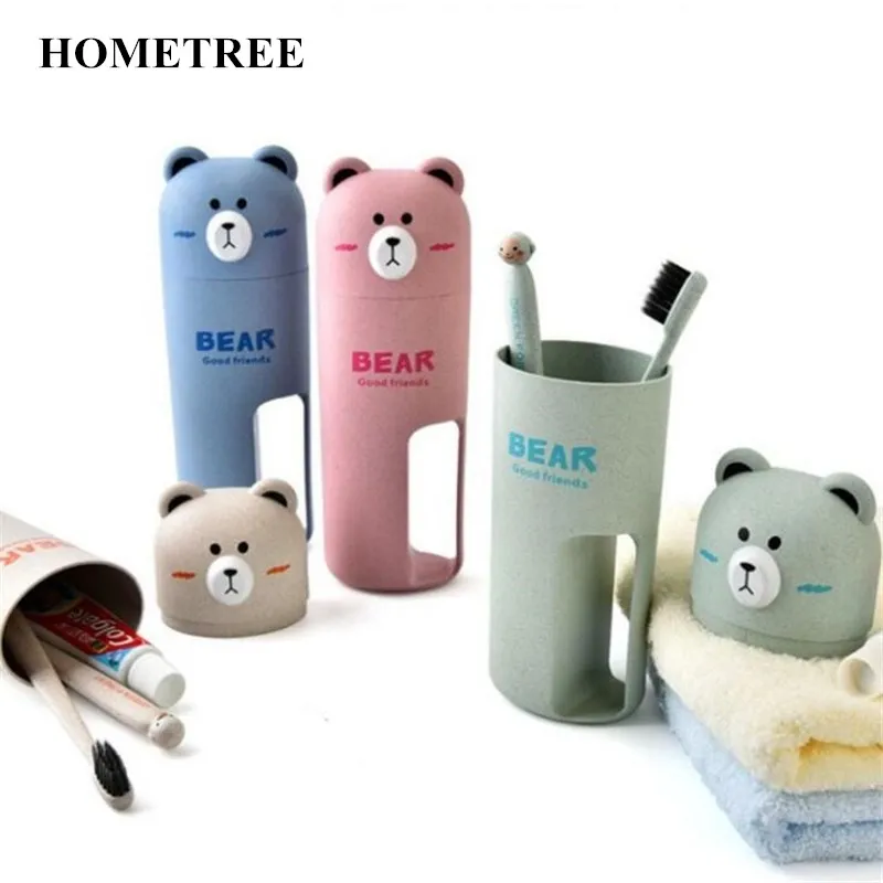 Портативный дорожный набор для дома, коробка для хранения зубных щеток и чашек, Домашний Органайзер с медведем, зубная паста, зубная щетка, полотенце, чашка для мытья, H146