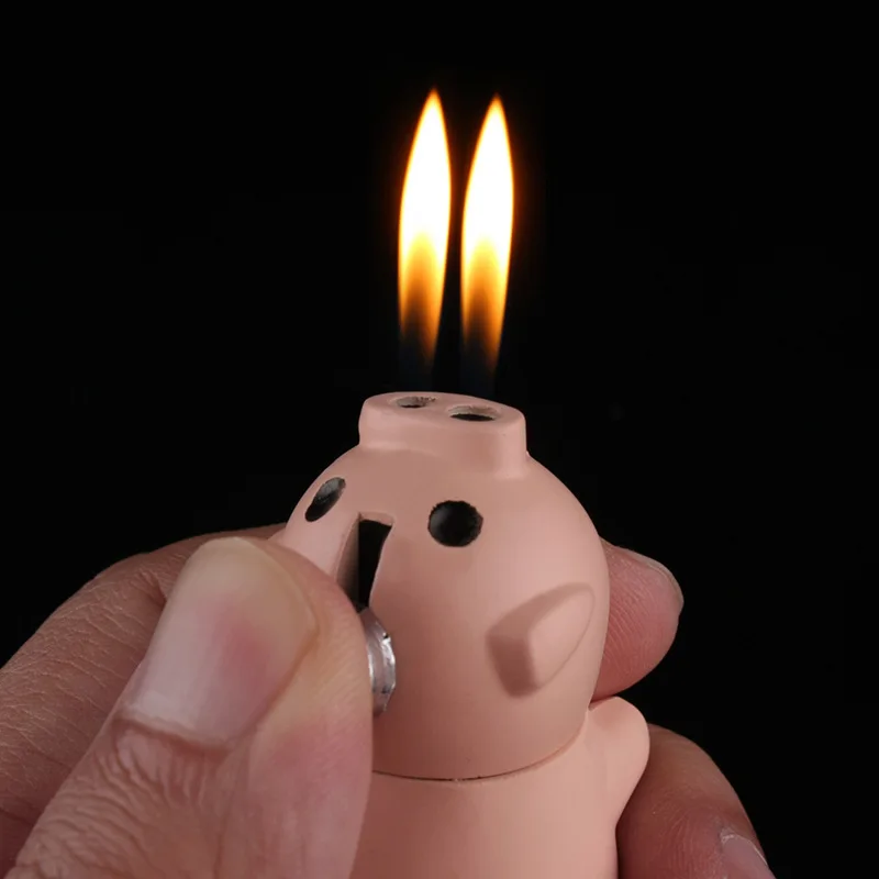 Креативная новая Бутановая Зажигалка забавная игрушка портативная Маленькая свинья форма двойная пожарная зажигалка брелок надувная Бесплатная пожарная Зажигалка без газа