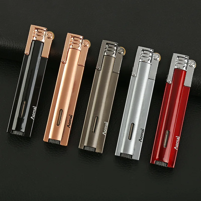 Мини длинная полоса шлифовальный круг газовая Зажигалка металлическая ветрозащитная Бутановая горелка бензиновая Зажигалка портативная зажигалка