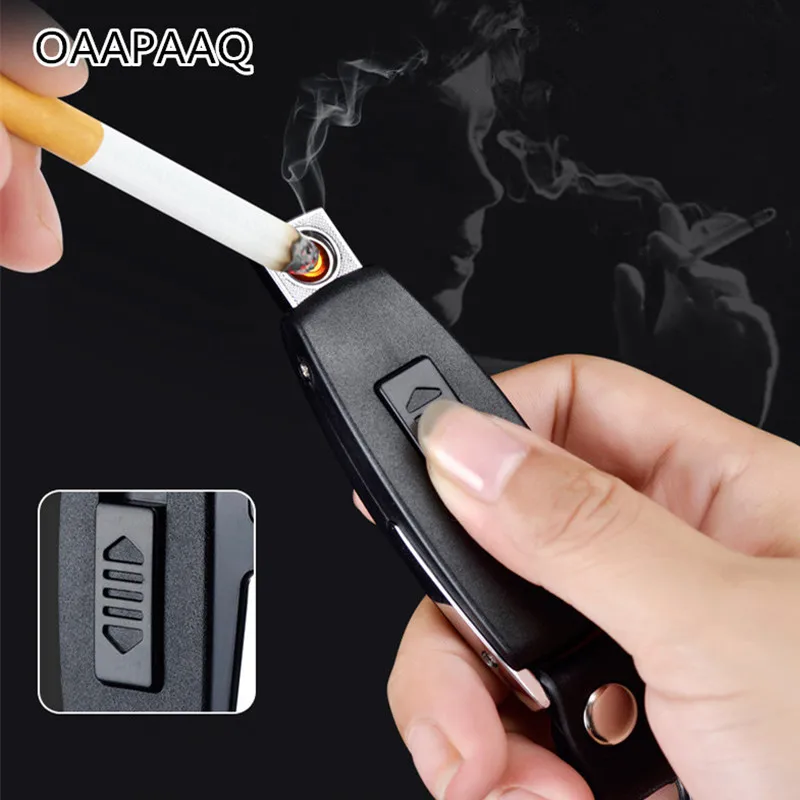 2017 Новинка USB Зажигалка перезаряжаемая Электронная зажигалка брелок для сигарет турбо Зажигалка кожаный брелок беспламенная сигарета пальсма