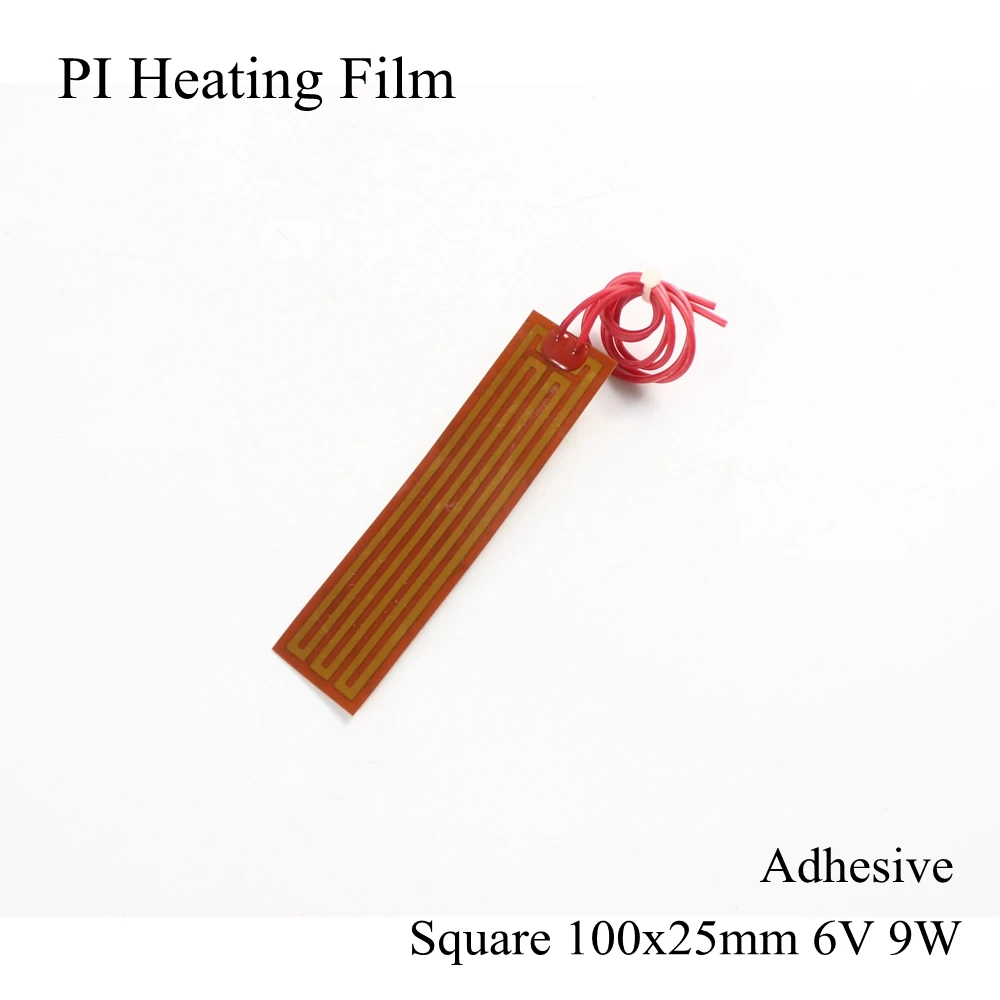 100 мм x 25 мм 6 в 9 Вт полиимидный нагреватель PI нагревательная пленка пластина электрическая панель с подогревом коврик Гальваническая Гибкая клейкая фольга масло