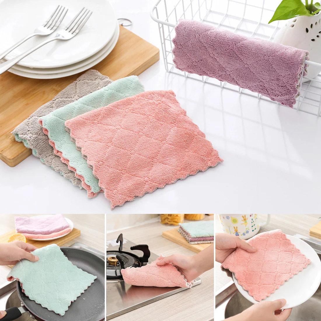 4 шт. толще двойной-слоя микрофибры Протрите абсорбирующий стол кухонное полотенце для чистки тряпка для мытья посуды домашнее кухонное пол...