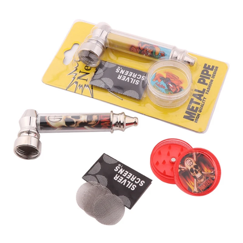 Высококачественные металлические трубы для курения табачных трубок + мельница для измельчения детекторов дыма сигаретная точилка держате...