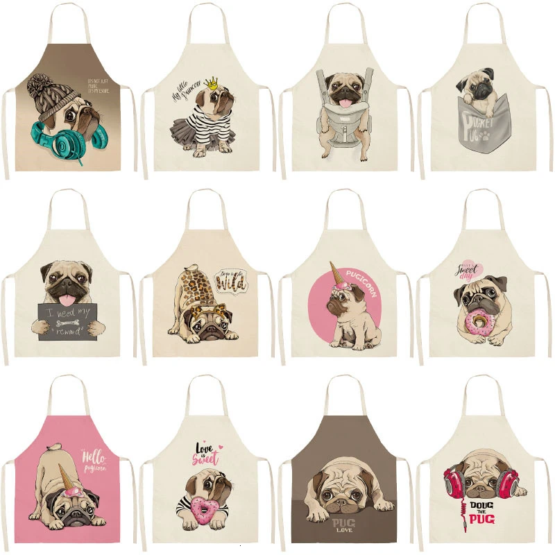 1 шт., хлопковый фартук без рукавов с милой собачкой, льняные Кухонные фартуки с принтом, женские домашние фартуки для приготовления пищи, вы...