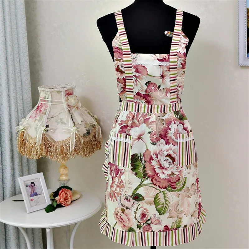 Кулинарные фартуки водонепроницаемый классический цветочный кухонный фартук для взрослых женщин леди Ресторан дома карман безрукавный фа...