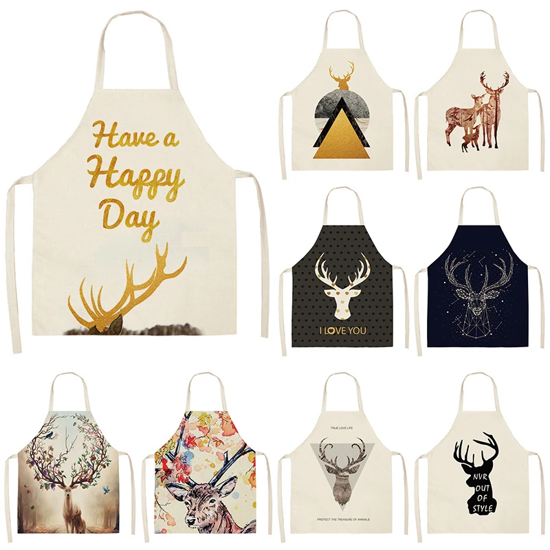 Кухонные фартуки с буквами оленя для женщин, хлопковые льняные нагрудники для домашней уборки, фартук для домашней кухни 53*65 см WQL0197