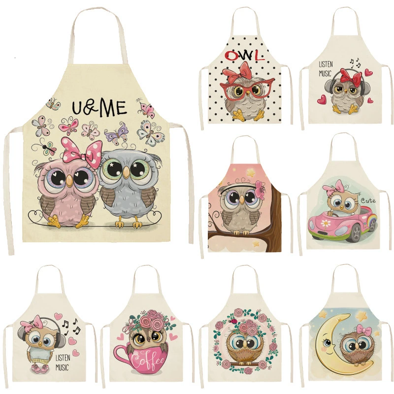 1 шт. фартук без рукавов с изображением совы, хлопок, лен, цветочный принт, для кухни, Короткий Передник для женщин, для дома, для приготовлени...