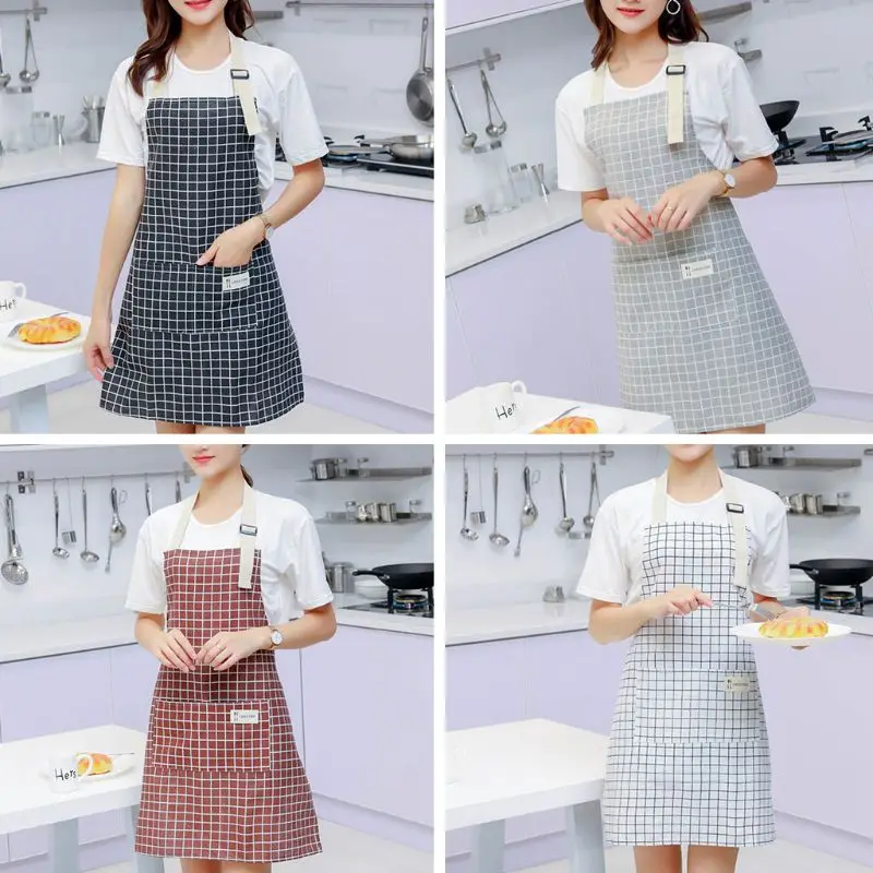 Унисекс Регулируемый клетчатый, хлопчатобумажный поварский фартук с 2 карманами для Кухня Пособия по кулинарии выпечки бытовой химии Ресто...