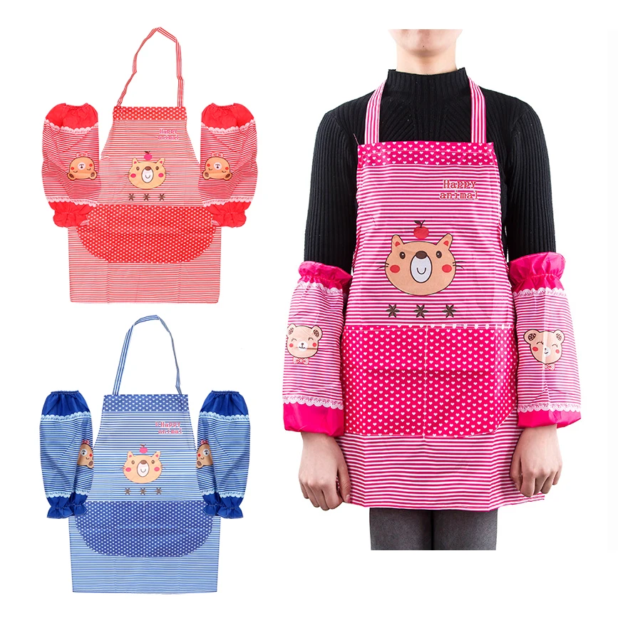 Фартук с изображением медведя с 1 пара рукав Карманный Фартук платье набор фартук барбекю инструмент бытовой чистящий инструмент анти-масл...