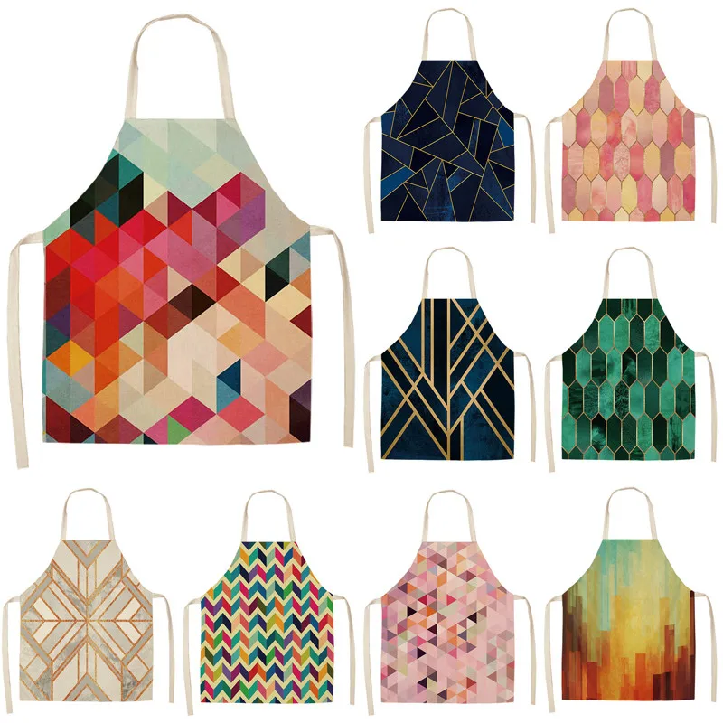 1 шт с геометрическим принтом Кухня женские фартуки и человек домой Пособия по кулинарии магазин выпечки очистки фартука хлопковые льняные ...