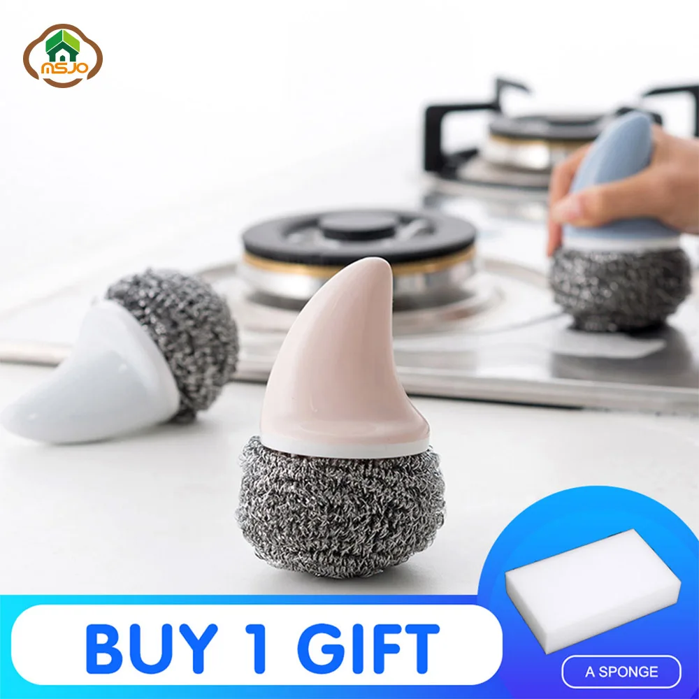 MSJO щетка для чистки Блюдо чаша горшок из нержавеющей стали очиститель для мячей Scrubbers новая Акула ручка проволока кухонные чистящие щетки