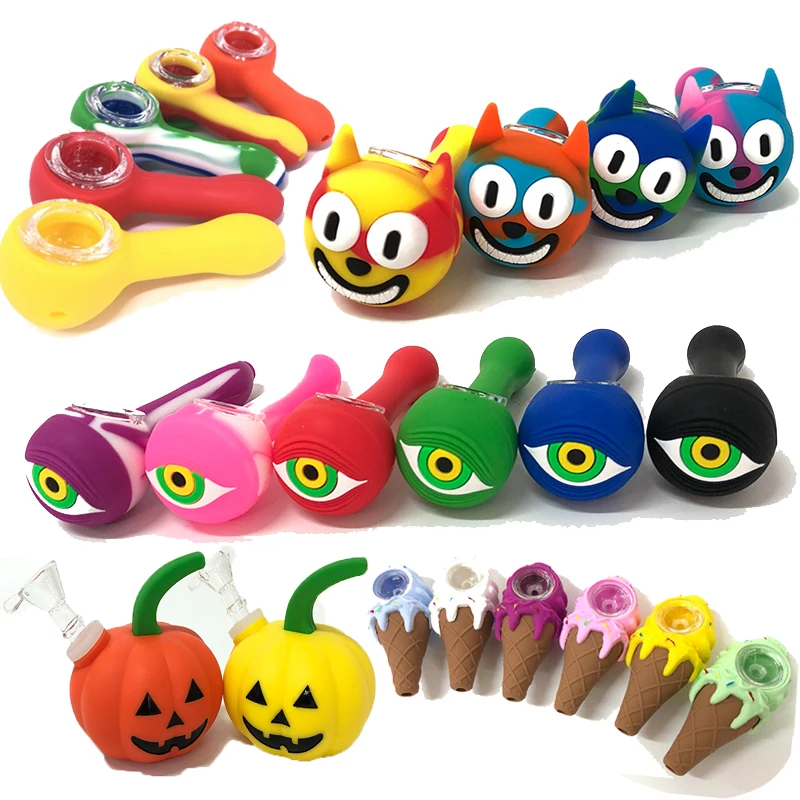 Модный Креативный дизайн цветные Мультяшные Силиконовые Стеклянные табачные трубки курительные аксессуары случайный цвет
