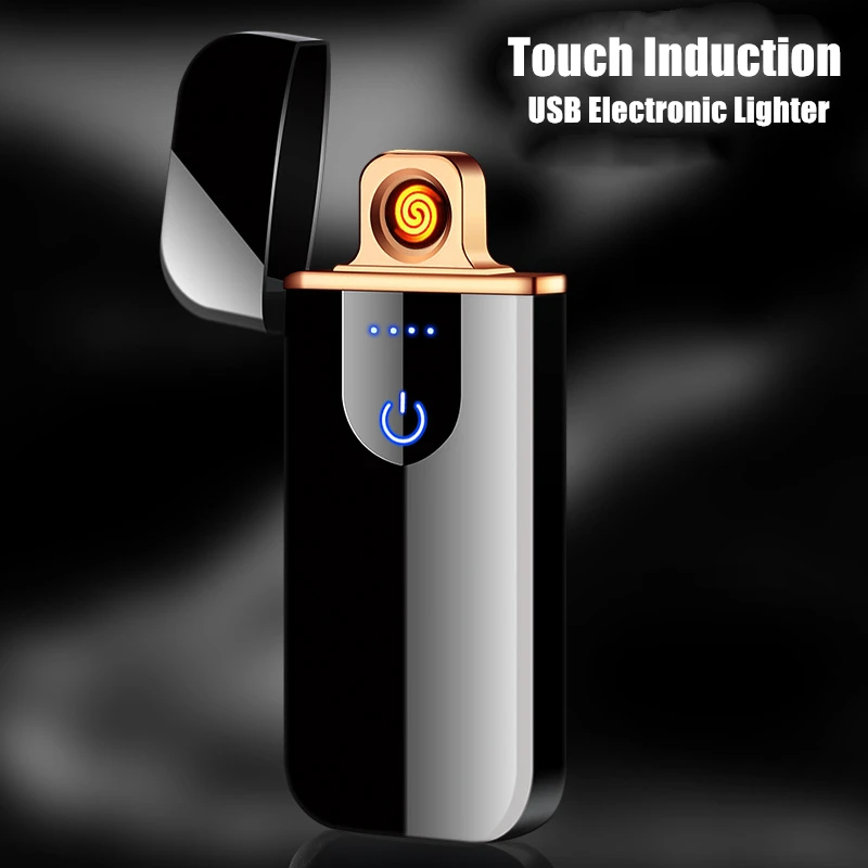 Ультра тонкий USB прикуриватель перезаряжаемый ветрозащитный негорящий электронный зажигалка сенсорная Индукционная двухсторонняя плазме...
